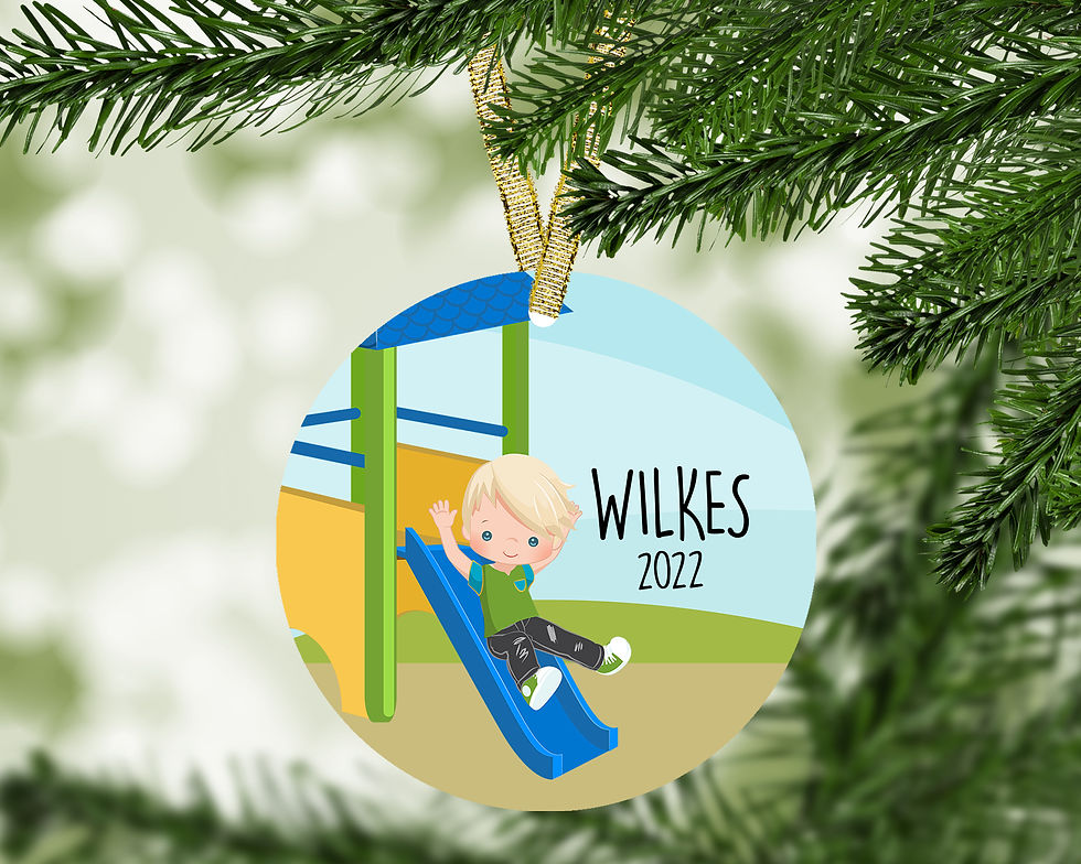 Boy on Playground Personalized Christmas Ornament - Toddler Ornament - Kids Gift